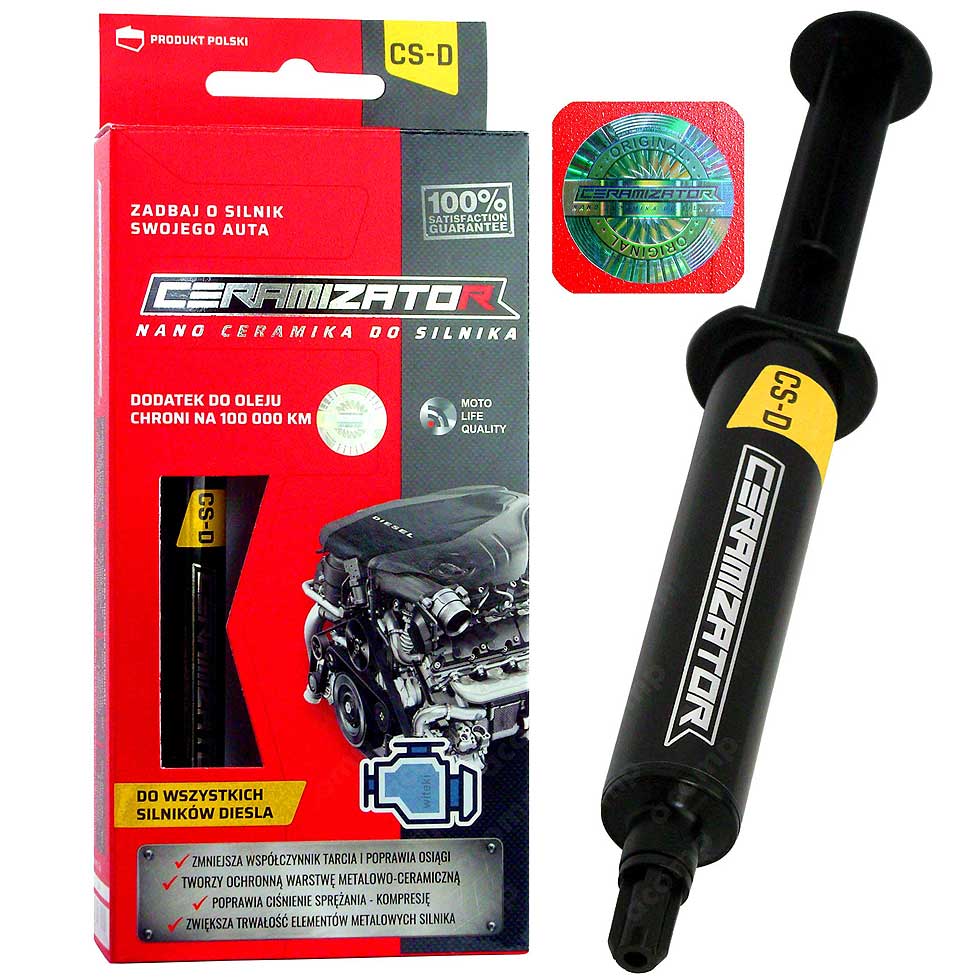 CERAMIZATOR CS-D: dodatek ceramiczny do oleju silnika diesla. Chroni silnik przed skutkami tarcia przez okres do 100 000 km, nawet jeśli w tym czasie wymienisz olej.