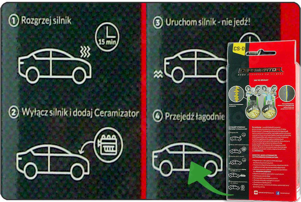- wyłącz silnik i dodaj CERAMIZATOR