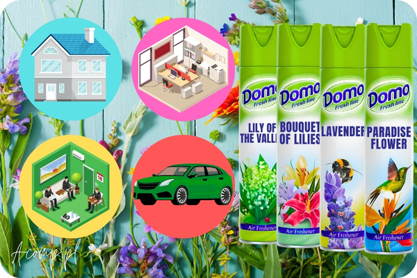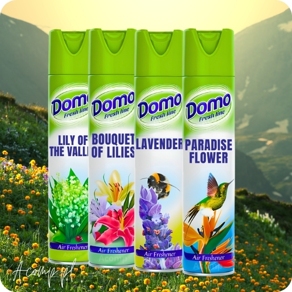 DOMO to preparat do odświeżania powietrza o bardzo przyjemnym, naturalnym aromacie. Nie dusi i nie jest drażniący jak tanie aerozole.