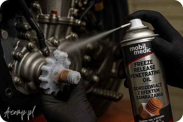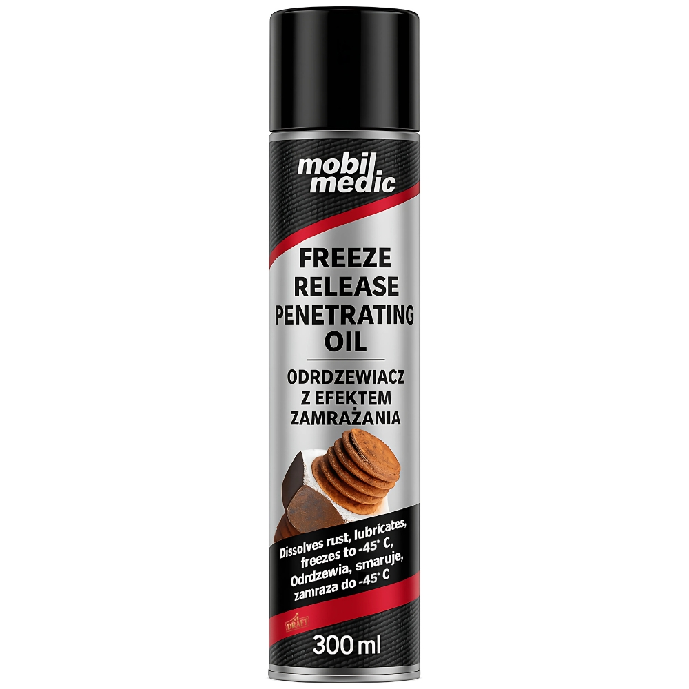 MOBIL MEDIC Freeze Release Penetrating Oil 300ml - super efektywny odrdzewiacz z efektem zamrażania rdzy do -45°C. Nie zawiera żywic, kwasów ani silikonu. Nie reaguje z gumą i uszczelkami. Jest w pełni bezpieczny.