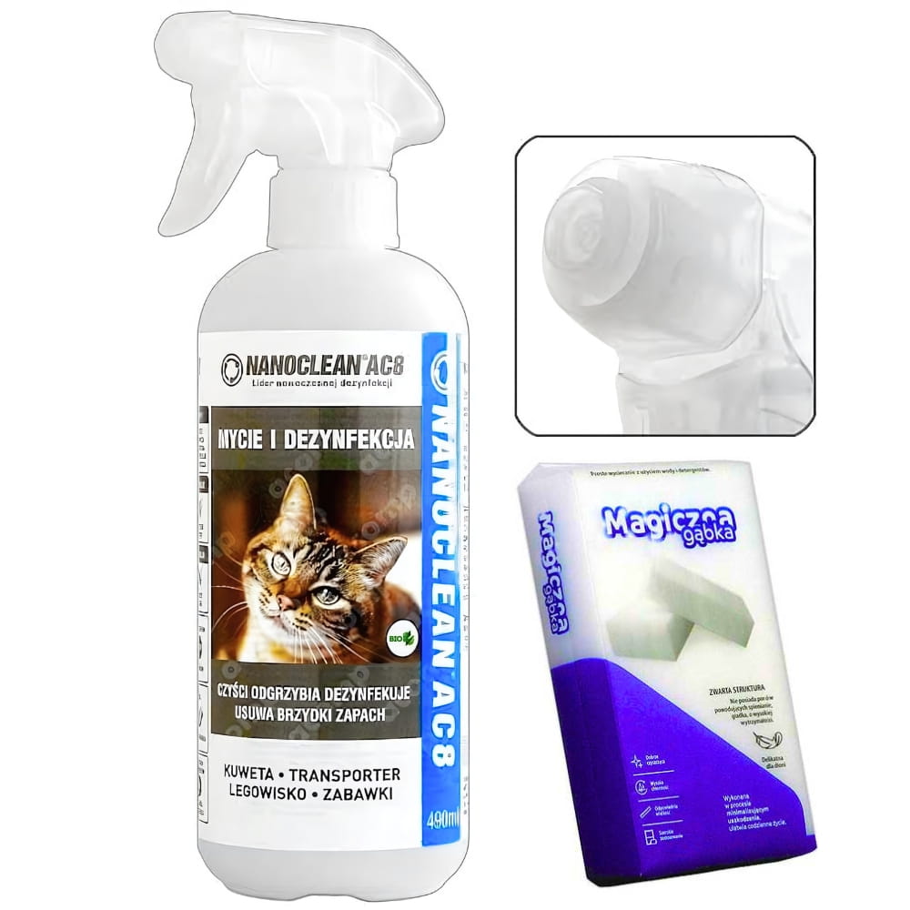 Nanoclean AC8 HOME KOT 490ml - to obecnie jedyny na rynku neutralizator ALL IN ONE (5w1) myjąco-dezynfekujący z pełnym zakresem biobójczym. Skutecznie czyści plamy, usuwa wirusy i bakterie oraz neutralizuje nawet bardzo ciężkie zapachy.