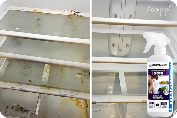 - Odgrzybianie: Preparat zwalcza pleśń i grzyby, które mogą rozwijać się w wilgotnym środowisku np. lodówki. Regularne stosowanie Nanoclean AC8 pomaga zapobiegać powstawaniu pleśni, co jest kluczowe dla utrzymania zdrowych warunków przechowywania żywności.