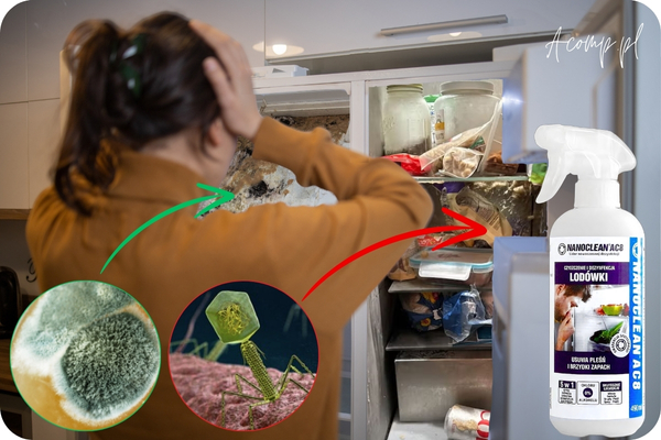 Nanoclean AC8 HOME Lodówka - to obecnie jedyny na rynku preparat ALL IN ONE (5w1) myjąco-dezynfekujący z pełnym zakresem biobójczym. Usuwać trudne plamy, pleśń, bakterie oraz nieprzyjemne zapachy, co zapewnia długotrwałą świeżość wnętrza lodówki, kuchenki mikrofalowej czy innych urządzeń.