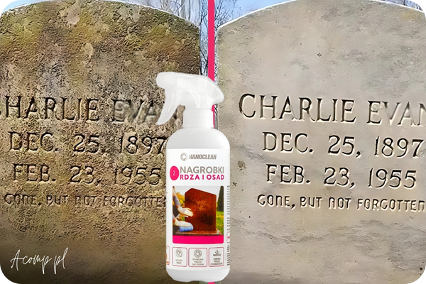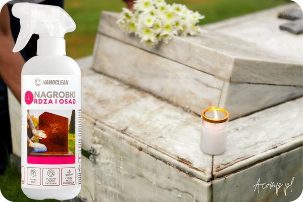 ➡️ Nanoclean „Rdza i Osad” ma formułę dopasowaną do kamieni nagrobnych – bez silnych kwasów i wybielaczy.