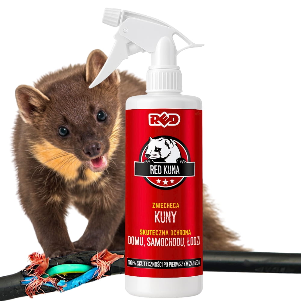 RED KUNA SPRAY to piekielny preparat Doskonały do zabezpieczenia powierzchni wewnątrz i na zewnątrz. Chroniący przed niechcianymi gośćmi, takimi jak kuny, łasice i inne intruzy futrzane. Dzięki wieloskładnikowej formule RED KUNA SPRAY cechuje drażniąca woń lotnych składników, co wywołuje silny efekt palenia, a to pozwala chronić przed przegryzaniem i niszczeniem elementów gumowych, wykonanych z tworzywa, zawierających BIO składniki z mączki kukurydzianej. Idealny do ochrony kabli, przewodów, wiązek oraz mat wygłuszających montowanych w komorach silników. Zabezpiecza poddasza, rynny i przedmioty w ogrodzie .