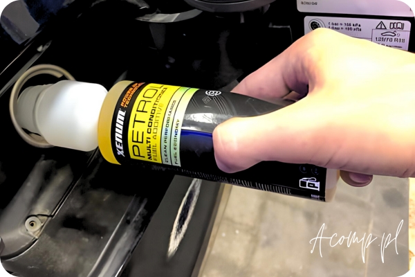 - Dodaj do zbiornika na benzynę przed zatankowaniem albo po uzupełnieniu go paliwem.